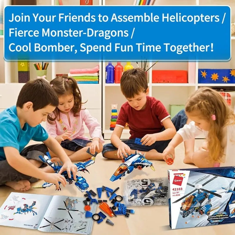 3 in1 Building Blocks, Helicopter Bomber, Monster Dragon Cool Building Toy Best Toys Gifts Sky Overlord Series 604 Pieces