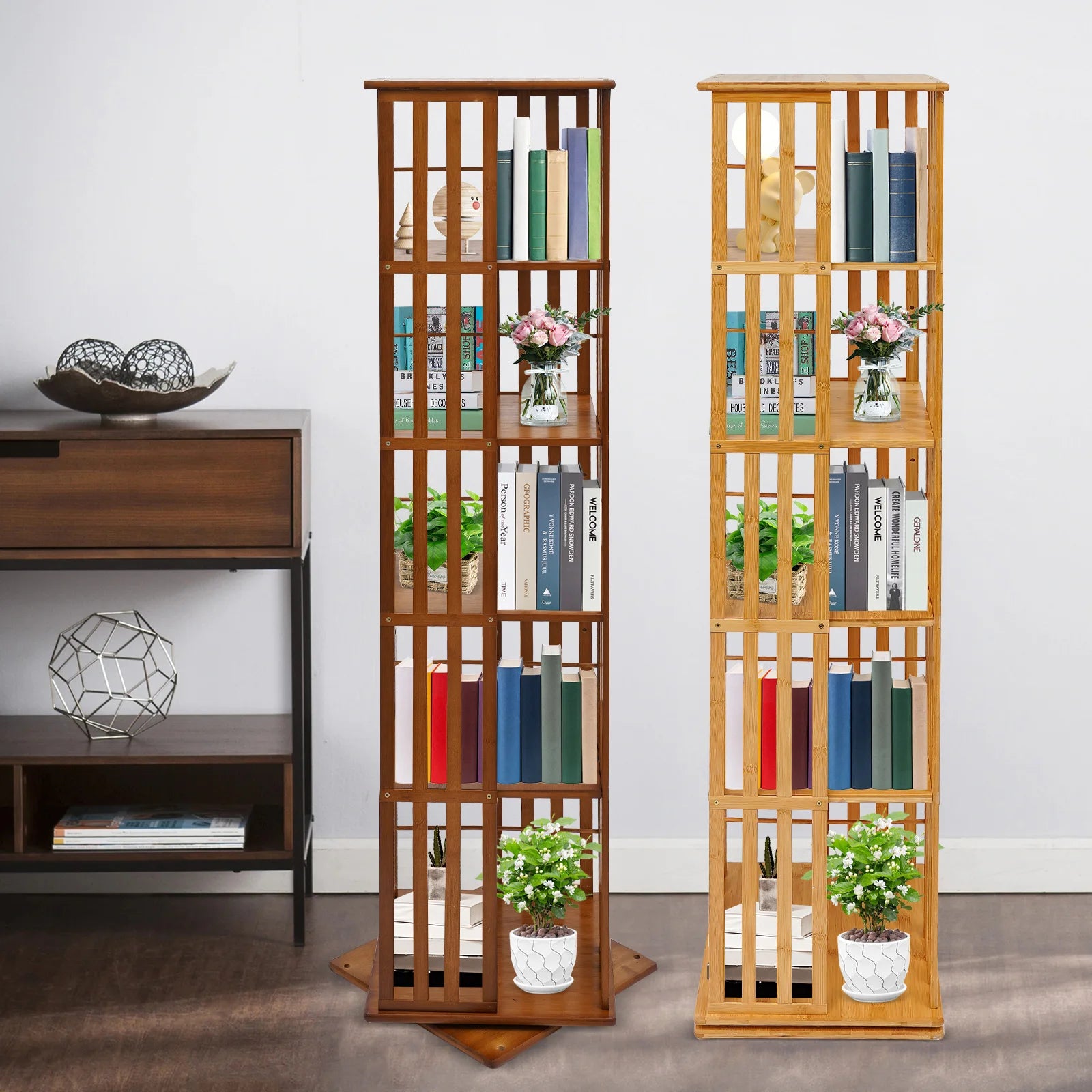 5-Tier Bamboo Rotating Bookcase,Tan/Wood Color