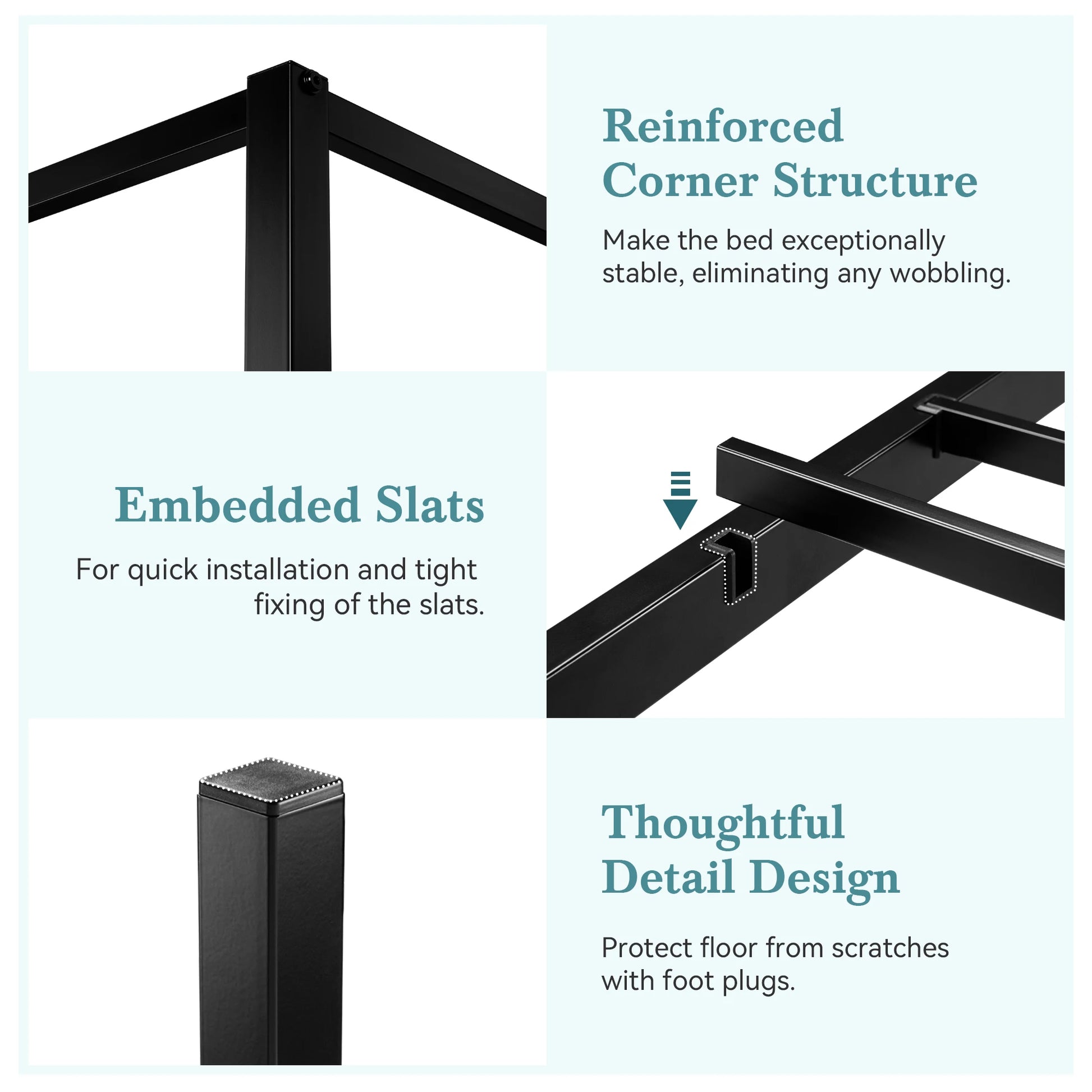 Canopy Bed Frame, Enhanced 4-Poster, 3-Metal Crossbar