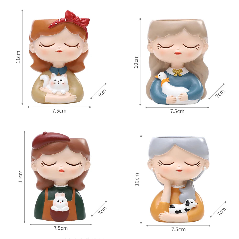 Cute Girl Small Plant Pot Resin Succulent Planter