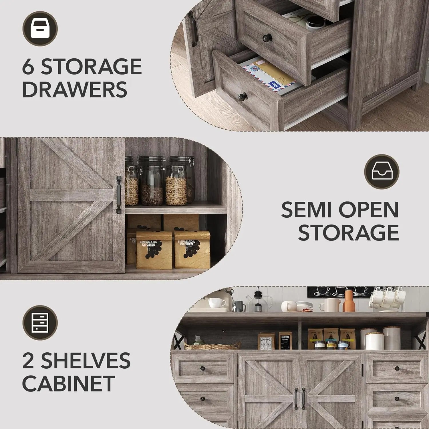 Farmhouse Sideboard Buffet Drawers/Open Shelves
