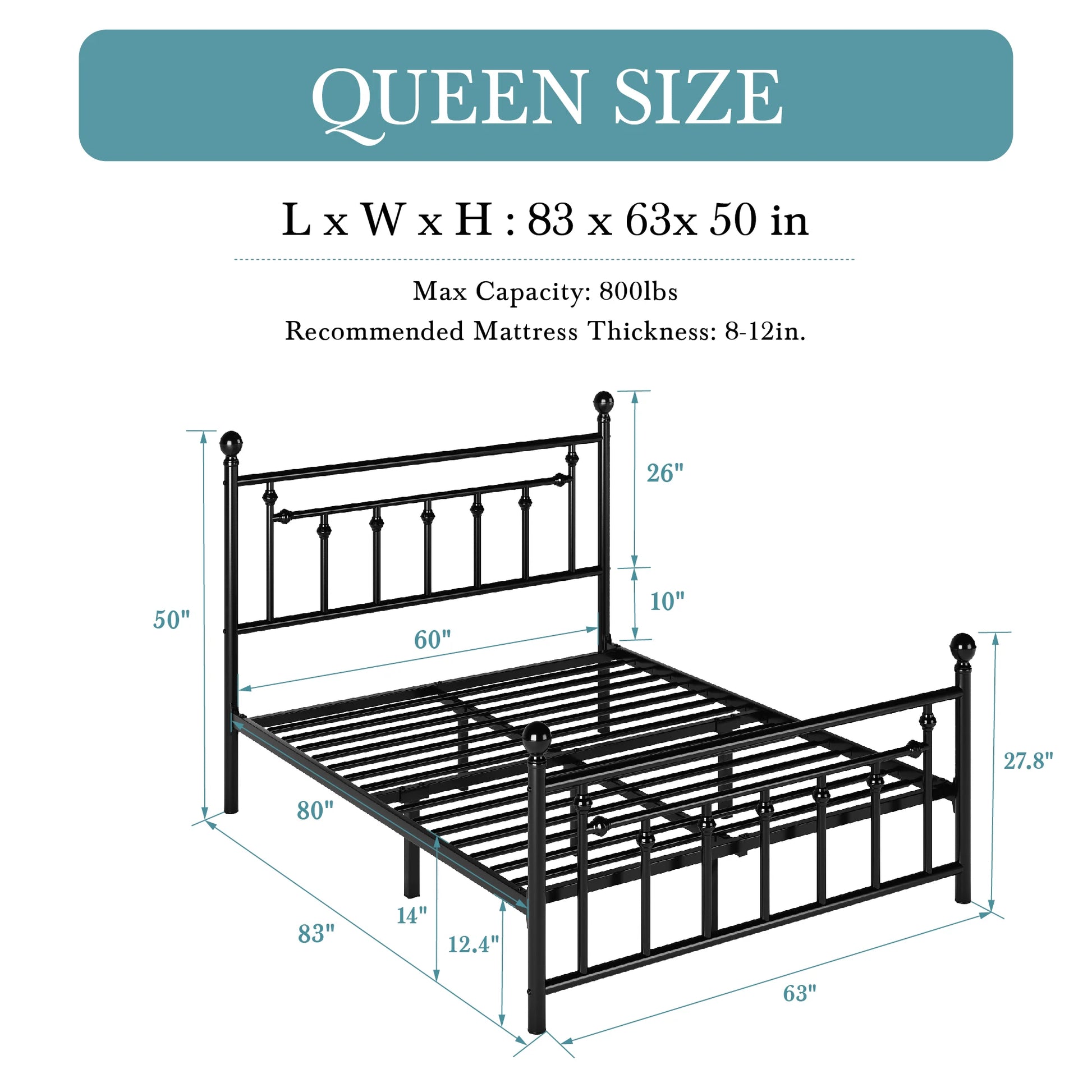 Iron-Art Victorian Style Metal Platform Bed Frame